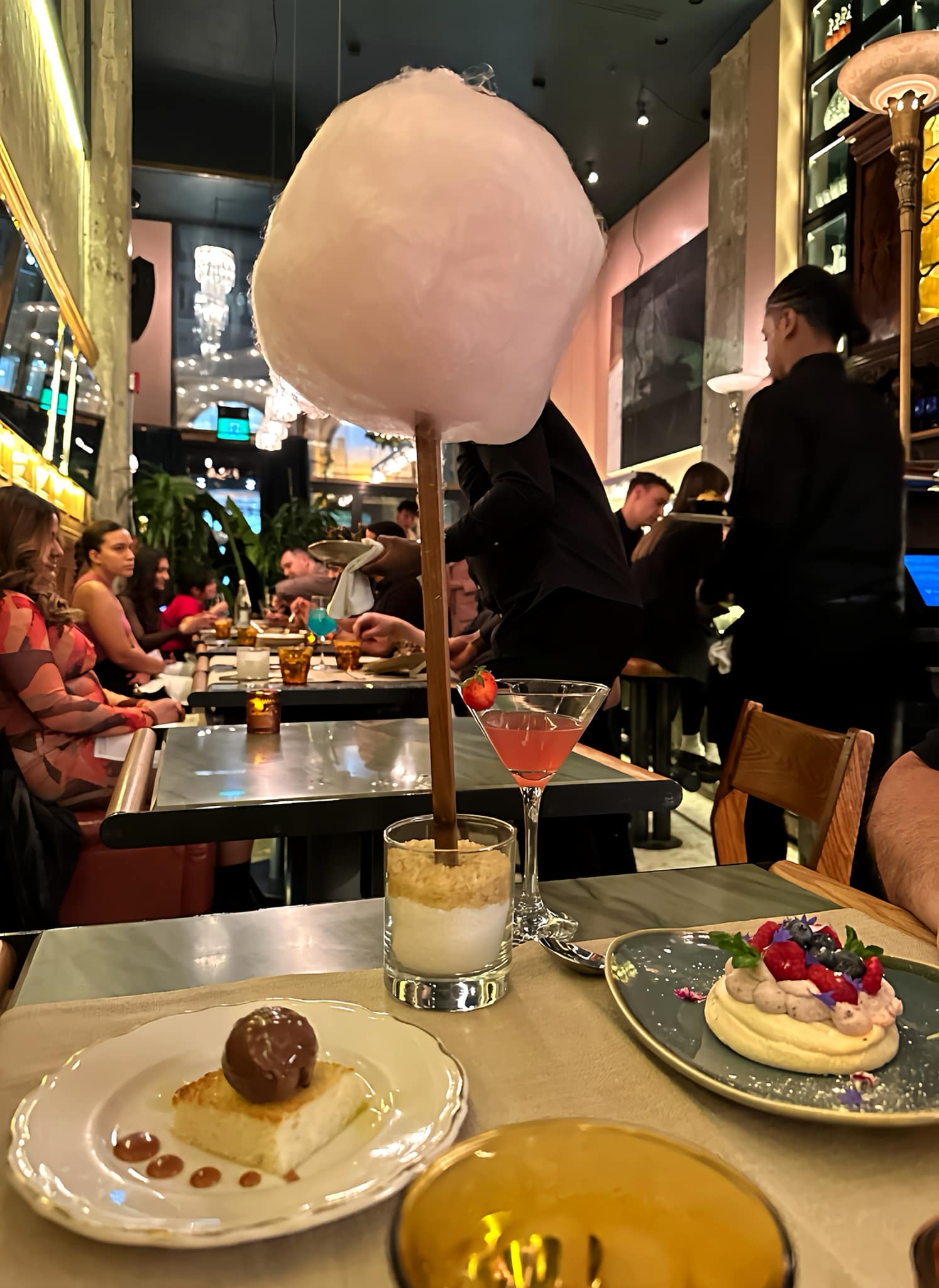 The meal ends on a sweet note with raspberry cheesecake, but the surprise appearance of fluffy cotton candy adds a whimsical touch that’s sure to make you smile.