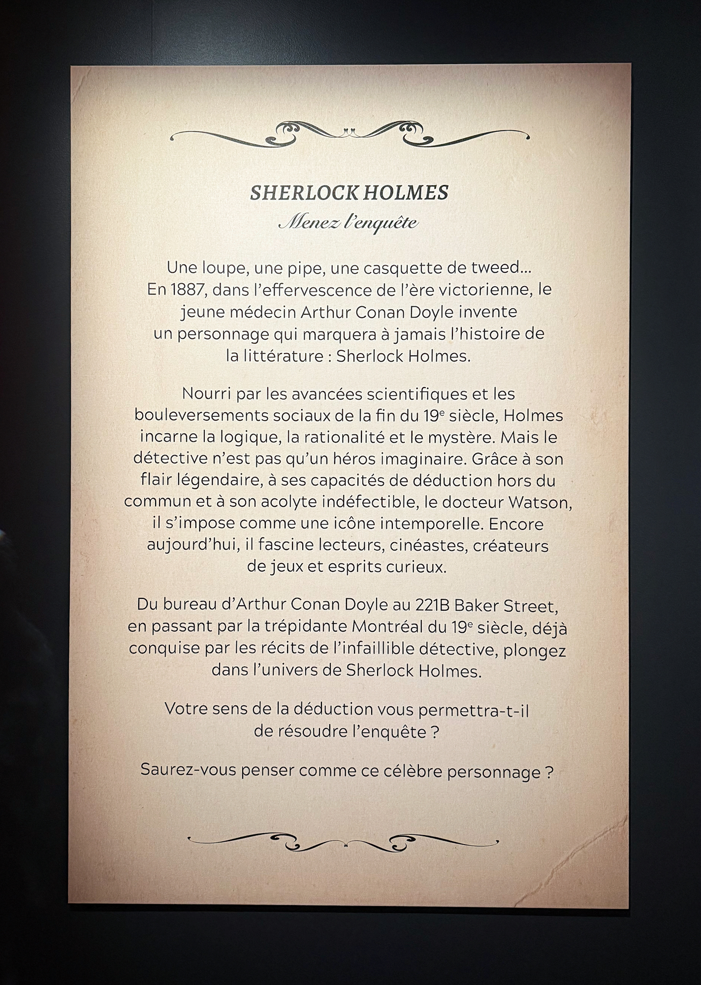 Yup. Picture yourself wandering foggy Victorian streets, peeking into crime scenes inspired by history, and piecing together clues like the world’s most famous detective. That’s basically what “Sherlock Holmes: Cracking the Case” at Pointe-à-Callière lets you do. I went to check it out, and honestly? It’s one of the most fun and immersive exhibitions I’ve seen in Montréal in a long time. Here’s the scoop on what it’s like and why you should totally go.